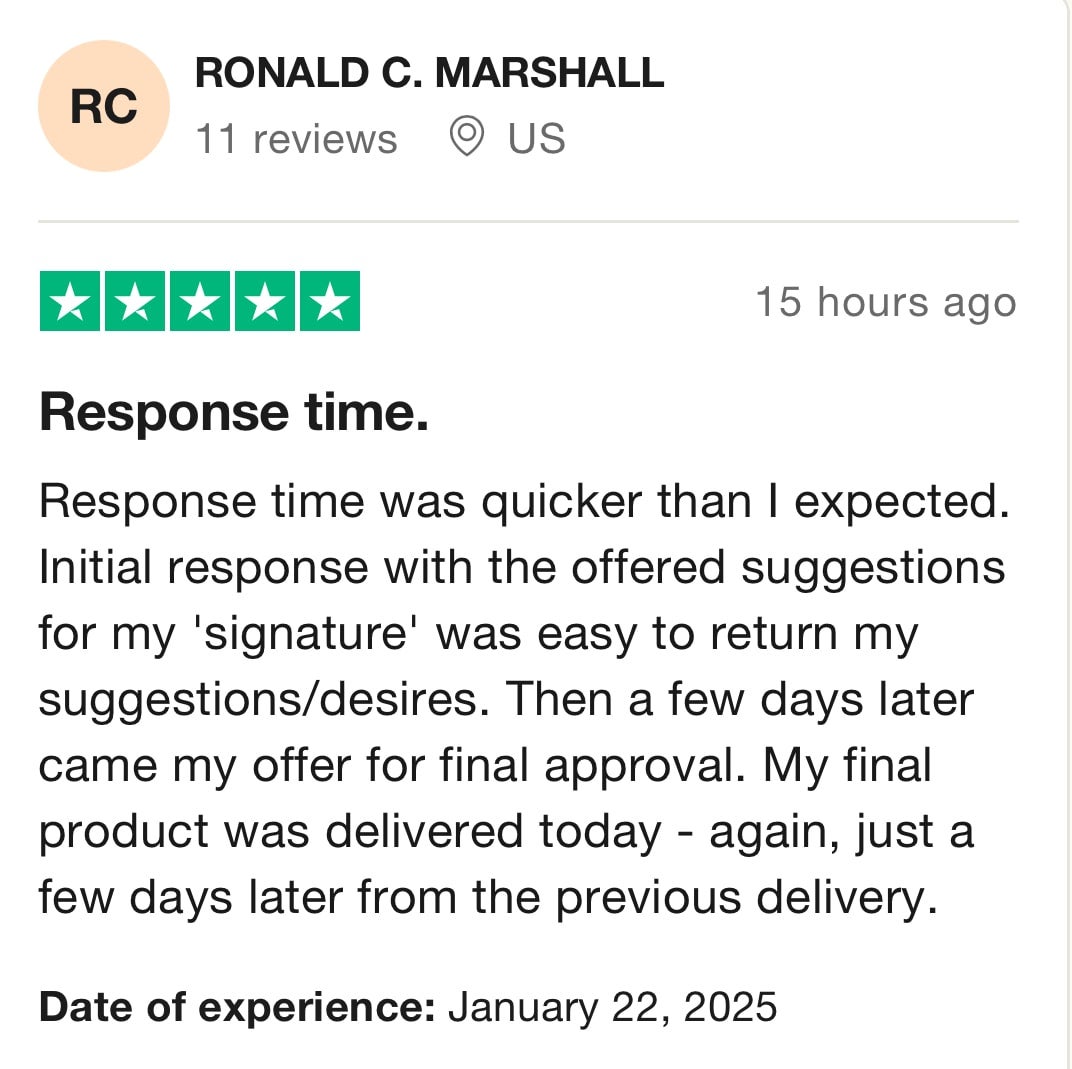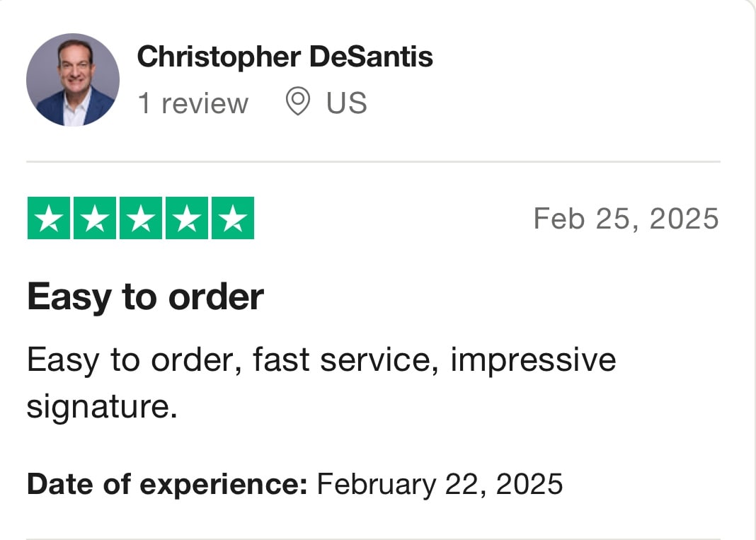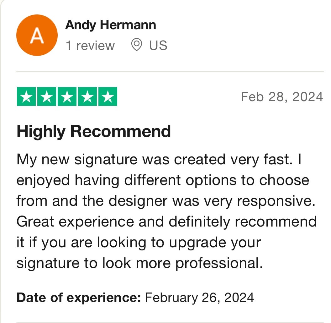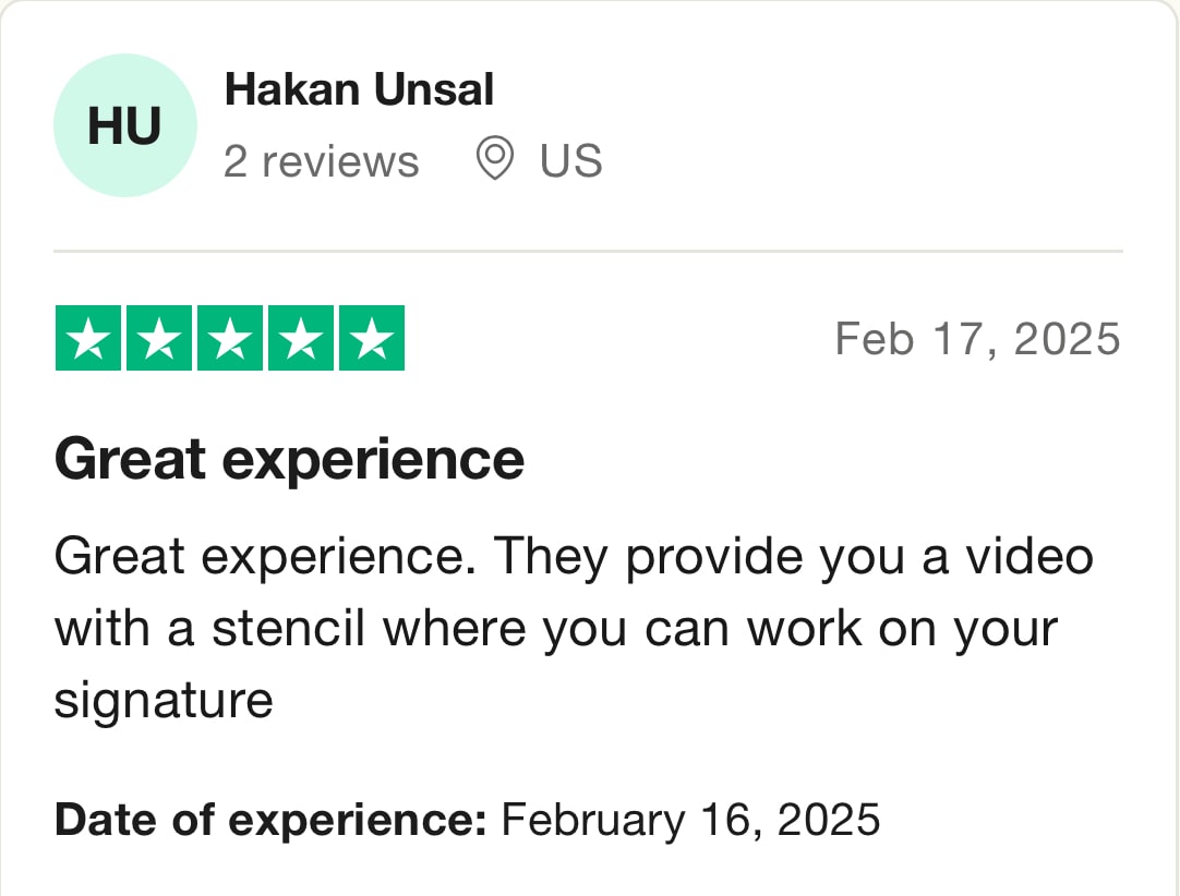 ONE TIME OFFER! Your signature is stored for life with unlimited access. If it's ever lost, we’ll redesign it free — one-time payment, lifetime access.